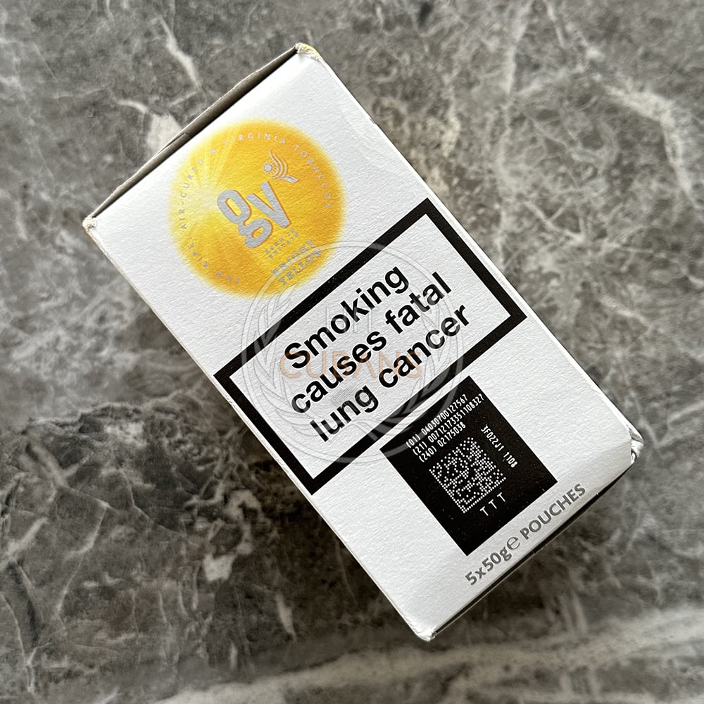 Golden Virginia Bright Yellow 50g is presented as a soft, fine ribbon (shag-style) cut with relatively uniform strands and limited stem content, packed in a sealed 50g pouch to preserve moisture. The tobacco uses a light-cured Virginia dominant blend, processed to a brighter colour and reduced density compared to the standard variant. The blend formulation prioritizes flue-cured leaf grades selected for lower body intensity and faster combustion characteristics.