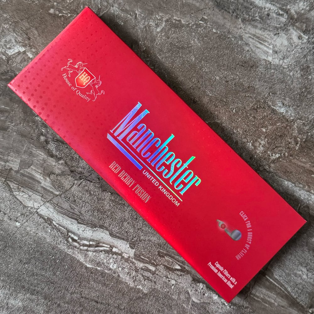 Manchester Red Berry Fusion cigarettes. Elegance with a click! This chic variety of modern packs comes with a capsule to release another dimension of exclusivity to your smoking experience, no matter your taste.